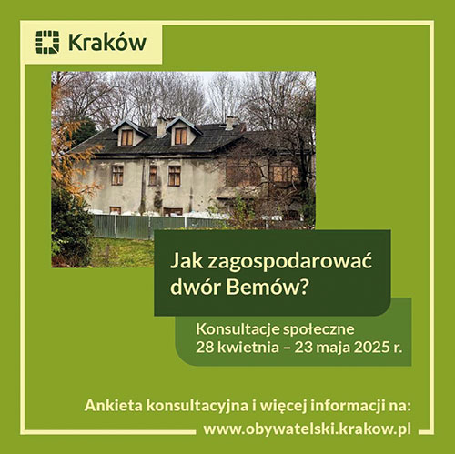 W dniu 28 kwietnia 2025 r. rozpoczęły się konsultacje społeczne w sprawie przyszłości Dworu Bemów, znajdującego się na terenie zrewitalizowanego Parku Duchackiego w Krakowie, które zakończą się 23 maja 2025 r. Ich celem jest pozyskanie pomysłów oraz poznanie oczekiwań mieszkanek i mieszkańców w sprawie sposobu jego zagospodarowania oraz funkcji, jakie