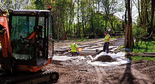 Po prowadzonych w ubiegłych latach pracach w parku Duchackim przyszedł czas na kolejne zmiany. – Aktualnie prowadzone prace to wjazd na parking, który wykonany został w ubiegłym roku, tymczasowe ogrodzenie dworu, którego budowa związana jest głównie z aktami wandalizmu, oraz ogród kwaterowy, który powstaje między zegarem a wgłębnikiem z alejki prowadzącej do spichlerza – wylicza Aleksandra Mikolaszek z Zarządu Zieleni Miejskiej.