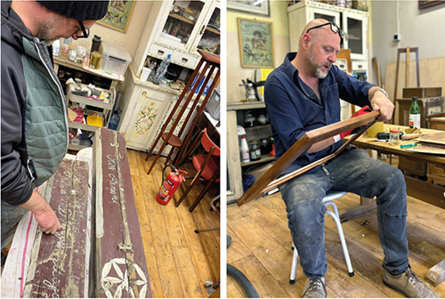 – No popatrz, co znowu przyszło  do pracowni. Kolejny sosręb. Tragarz, stragarz, w zależności z której części Polski. Ten jest bardzo stary. Połowa XIX wieku. Też z rozetą. Ja uwielbiam te historie. One też mnie chyba zaczynają kochać. Im więcej tych sosrębów, to ja jestem szczęśliwszy, że mogę je ratować – mówi Pan Sławek.