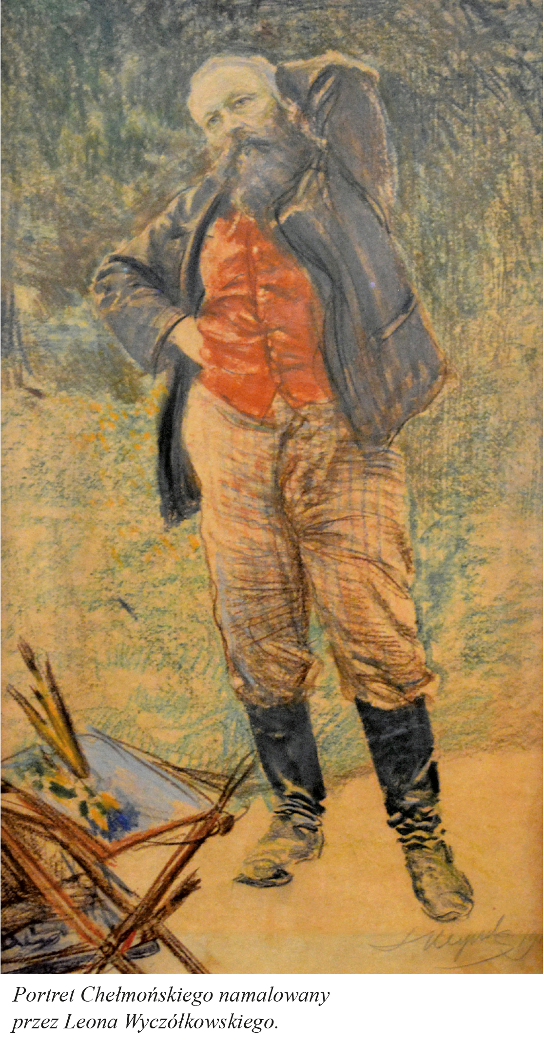 Po tej samej stronie znajduje się część poświęcona biografii artysty.  Można tu obejrzeć m.in. trzy dzieła innych malarzy –  dwa portrety Chełmońskiego stworzone przez zaprzyjaźnionego z nim Leona Wyczółkowskiego oraz portret  córki artysty – Wandy Chełmońskiej namalowany przez  Olgę Boznańską.  Trzecia część, zlokalizowana po prawej stronie, ukazuje relację twórcy z naturą, odczuwanie jej i obrazowanie.  Wyeksponowano tu dzieła odzwierciedlające wrażliwość malarza, jego podejście do świata przyrody, w tym m.in. „Odlot żurawi” czy „Noc gwiaździstą”. W ramach zwiedzania tej części – pięknych, wielkoformatowych prac – odbiorcom towarzyszą… dźwięki. – Mam nadzieję, że ta część wywoła szczególne emocje – powiedziała dr Aleksandra Krypczyk-De Barra, wyjaśniając: – Zależało nam na tym, by każdy zwiedzający mógł sobie indywidualnie odpowiedzieć; jaki jest mój Chełmoński.