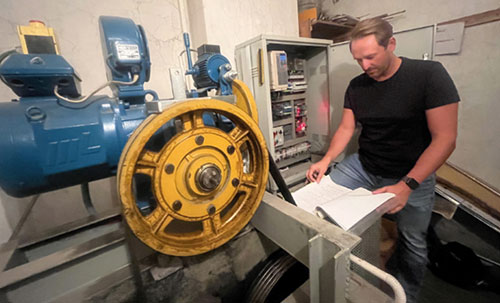 Pan PIOTR WYWIAŁ zajmuje się zawodowo naprawą i konserwacją zabytkowych wind. Spotykamy się w maszynowni jednej z nich. Najwyższe piętro w kamienicy, ciepło, i wyczuwalny zapach smaru. – Córka mi mówi, że pachnę pracą, jak wracam do domu – śmieje się Pan Piotr.