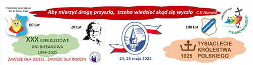 Czy Jubileuszowe Dni Bieżanowa mogły się nie odbyć? Musiały, także z uwagi na dodatkowe okoliczności. To jubileusze – 80 lecie Przedszkola Samorządowego 135, 100 lecie KS Biezanowianka, 1000 lecie Korony Polskiej, Rok Jubileuszowy Kościoła, 20 lecie odejścia Ojca Świętego. Nad sceną wisiał baner z cytatem C.K. Norwida Aby mierzyć drogę przyszłą, trzeba wiedzieć skąd się wyszło.